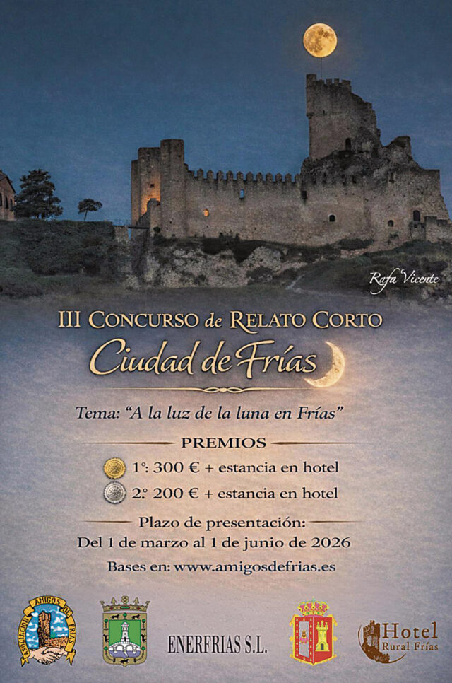 3º Concurso de Relatos Cortos Ciudad de Frías, organizado por la Asociación Amigos de Frías, con la colaboración de Enerfrías, el Ayuntamiento de Frías y la Diputación Provincial de Burgos.
