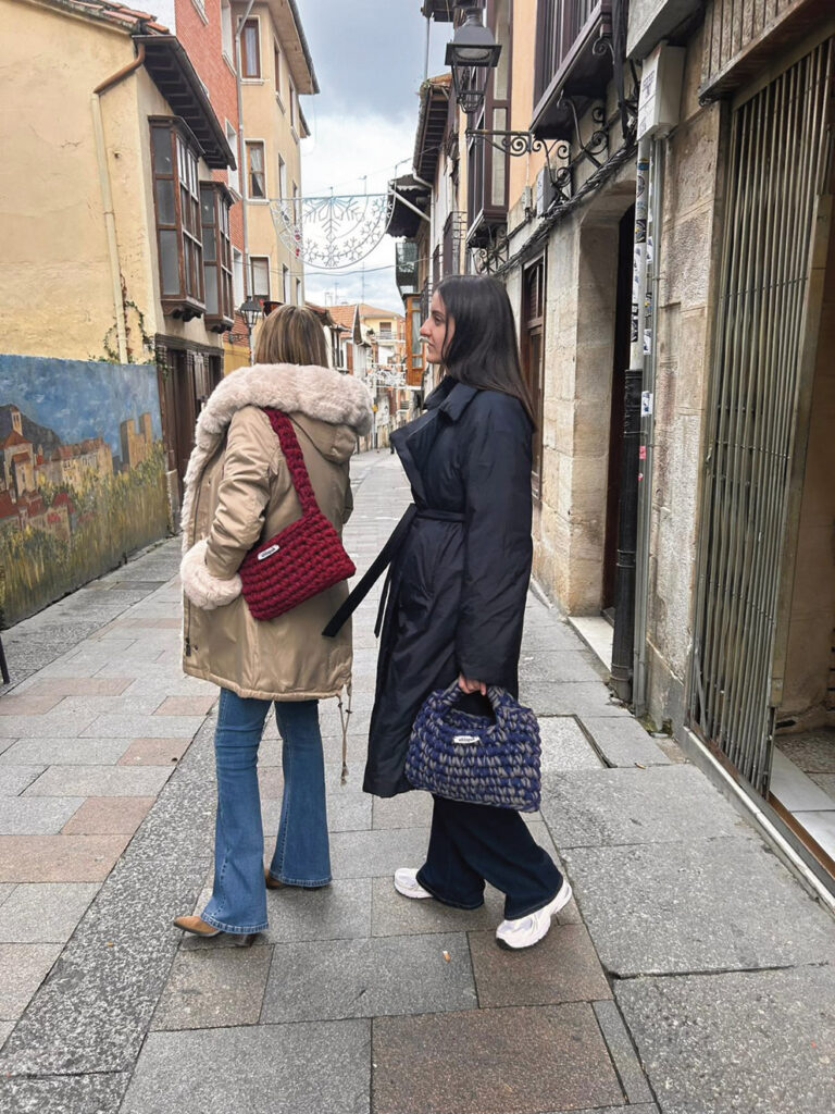 Creamos nuestro Instagram en marzo de 2024, aunque al principio solo vendíamos a amigas y familiares. Fue en el verano de ese mismo año cuando empezamos a llevar nuestros bolsos en Villarcayo, y al ver la buena acogida que tenían entre las chicas de nuestra edad, decidimos dar un pasito más y organizar un Pop Up para presentarlos. Contactamos con Gabriela, que lleva el espacio Volver en Medina, una iniciativa preciosa para llenar de vida la calle mayor con proyectos locales. Nos enseñó el local y nos encantó, así que montamos allí nuestro primer Market. La respuesta fue increíble: muchísimas chicas se animaron a visitarnos, fue todo un éxito y además nos dio muchísima visibilidad. Esa misma semana recibimos un montón de pedidos. Por eso Villarcayo y Medina son tan especiales para nosotras: ese verano el proyecto realmente nació y tomó forma, y no había día en que no viésemos a alguien por la calle con uno de nuestros bolsos.
