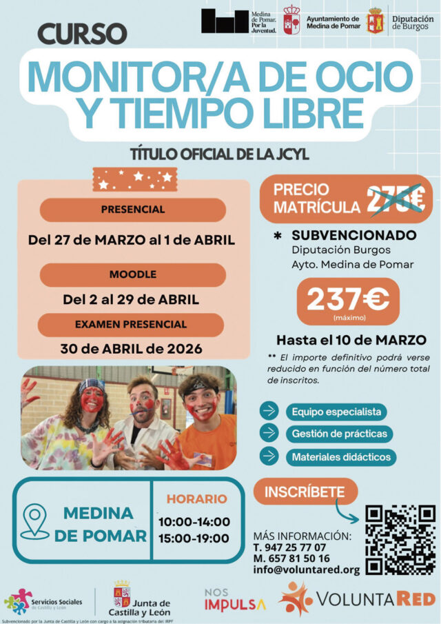 Durante este mes de marzo tendrán lugar en Medina de Pomar dos cursos a un precio especial ya que están subvencionados por la Diputación de Burgos y el Ayuntamiento de Medina de Pomar.