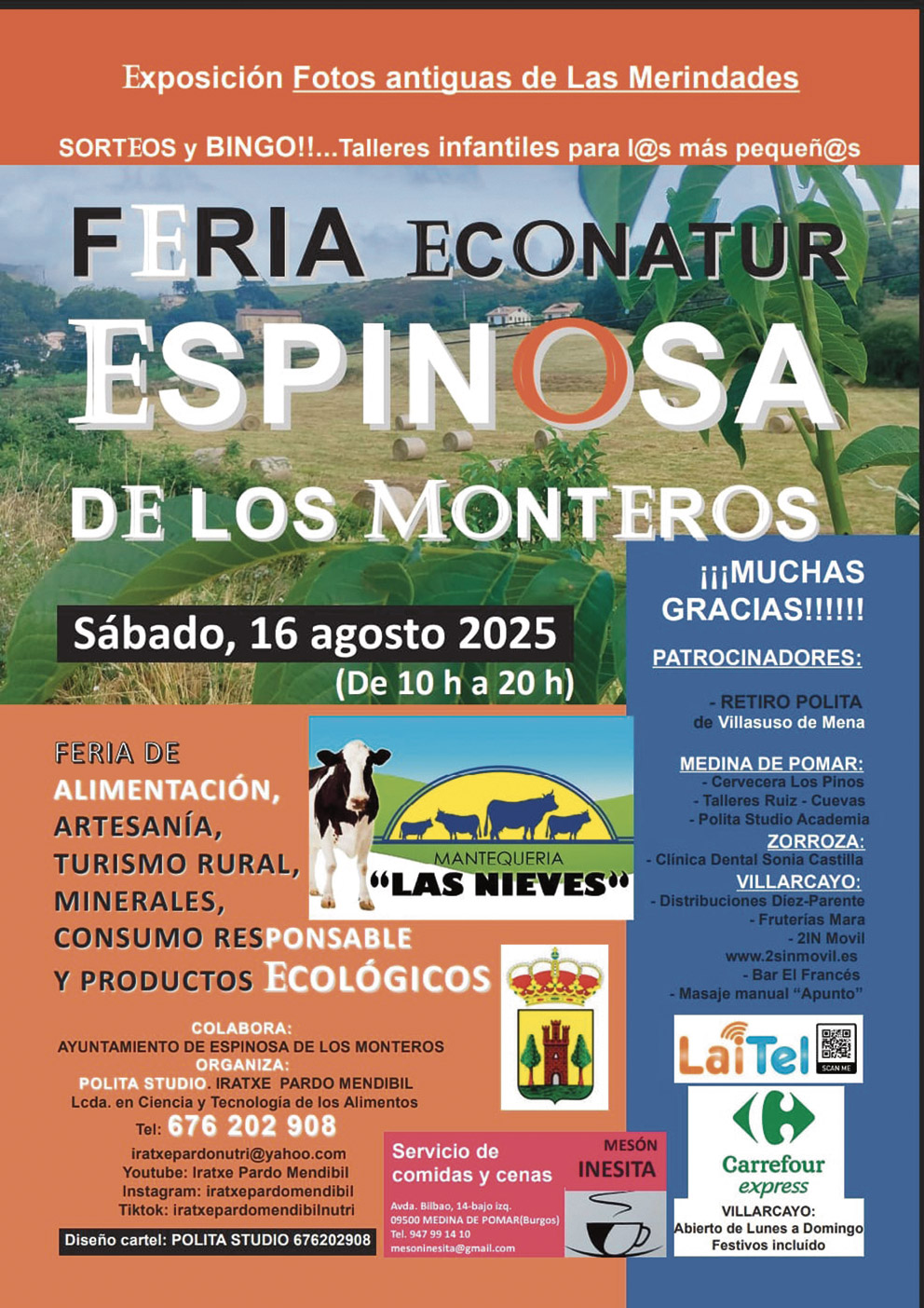 El próximo sábado, 16 de agosto, la plaza Sancho García recibirá la segunda edición de la feria Econatur en Espinosa.