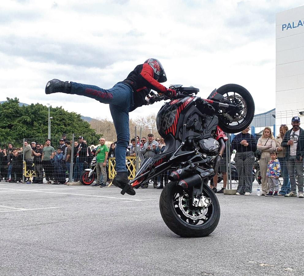 El piloto de Cuenca ofrecerá un espectáculo único con un repertorio de piruetas interminable, con las manos invertidas, de pie, a caballito con la rueda delantera y trasera… dejará con la boca abierta al público con todos y cada uno de los trucos que hace sobre la moto, y es que este stuntman lleva ya más de dos décadas como profesional de las dos ruedas con más de 800 eventos y casi 1300 Stunt Shows realizados… números de Record comparados con cualquier equipo de Stunt a nivel mundial.