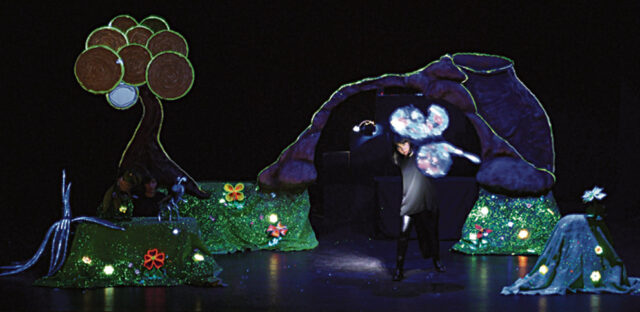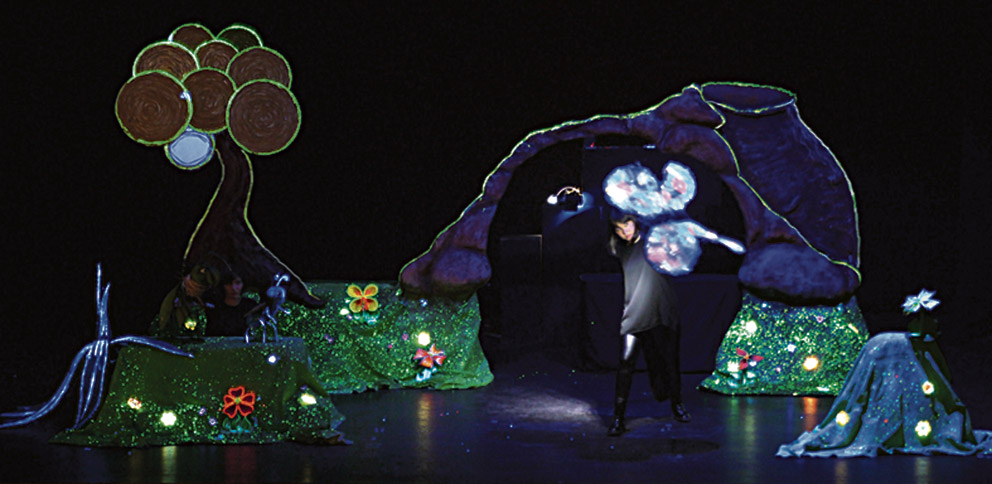 Azul y la revolución de los colores. Espectáculo de formato grande con títeres, actores y actrices. Las hormigas ven en blanco y negro. Por eso, para sus compañeras, Azul es otra hormiga negra. Para ella misma también. Sin embargo, Azul siente que hay algo más allá, y un día motivada por su necesidad de saber, descubre que fuera de su hormiguero existe un mundo lleno de colores.