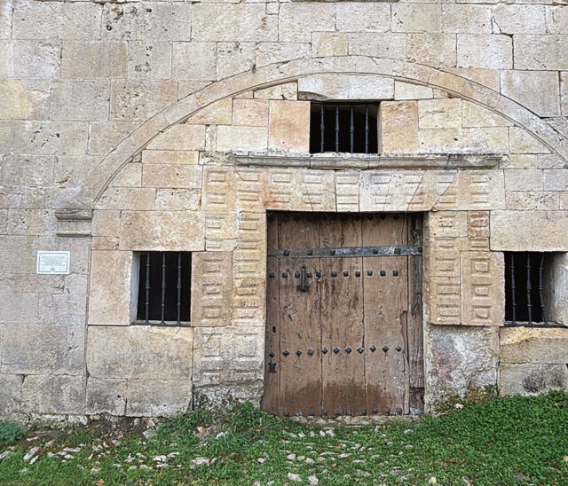 La instalación de la puerta de madera de la Cartuja de Miraflores en Rioseco se realizó este verano, durante la Semana del Voluntariado, entre Martín, carpintero de Nofuentes, y unos cuantos voluntarios más que adaptaron y colocaron la puerta en su lugar actual.