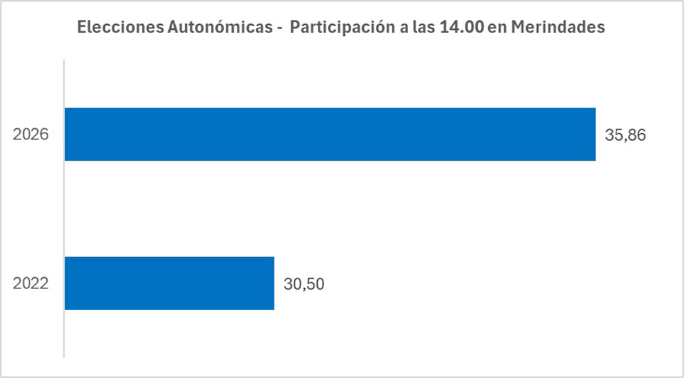 El dato de participación de las 14.00 en las Elecciones de Castilla y León deja de un porcentaje del 35,86%, 5.975 votantes, en las Merindades. Esto implica 5,36 puntos más que en 2022, cuando la cifra fue del 30,50%, 5.280 electores. Ya en el avance de las 11:30, se había observado un incremento de 3,46 puntos respecto a la misma franja horaria de 2022.
