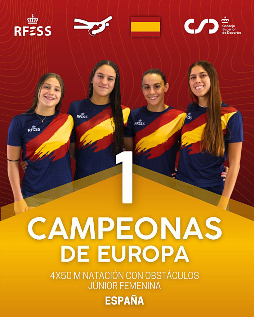 Y el 31 de agosto quedaban en 1ª posición en la prueba de Salvamento con tubo de rescate júnior femenino con el equipo formado por Sandra Santos Martínez, Lucía Zorrilla Fernández, Yael Mantecón Ruiz-Santaquiteria y Lucía Blanco Pla.