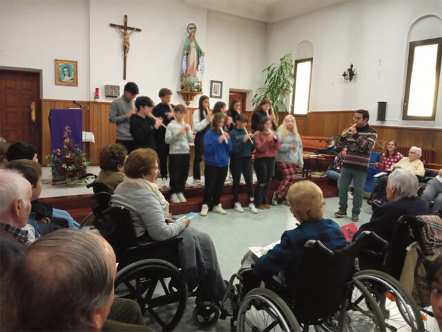 Así, ya en el mes de diciembre pasado el alumnado de 1º, 2º, 3º y 4º de la ESO, del instituto Doctor Sancho de Matienzo ha participado en diferentes actividades como han sido la entrega de postales navideñas personalizadas a cada uno de los residentes, un concierto de Navidad, un taller de musicoterapia, un taller de juegos populares: petanca, rana, tuta, bolos, entre otros; practicando un intercambio de conocimiento y experiencias con las personas más mayores de la Residencia, haciéndoles sentir que aún forman una parte importante de la sociedad, brindando lecciones de vida invaluables, siendo transmisores de tradiciones y cultura popular.