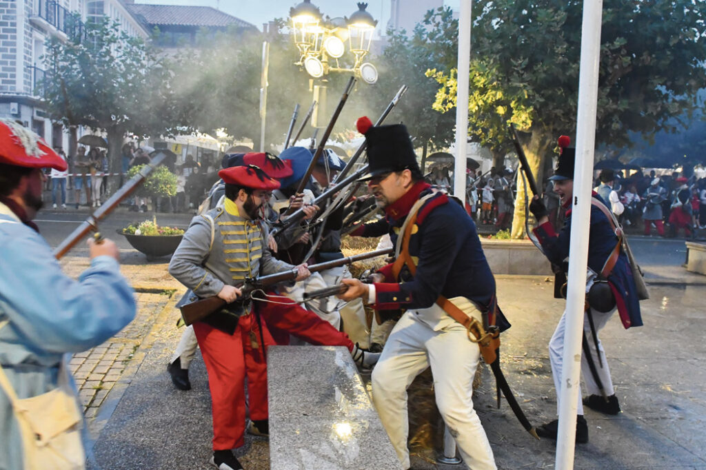 Una vez en el Ayuntamiento todos los uniformados formaron en la Plaza del Ayuntamiento, donde dispararon salvas con sus mosquetes y también fuego de artillería con un cañón ante la gran expectación de los presentes.