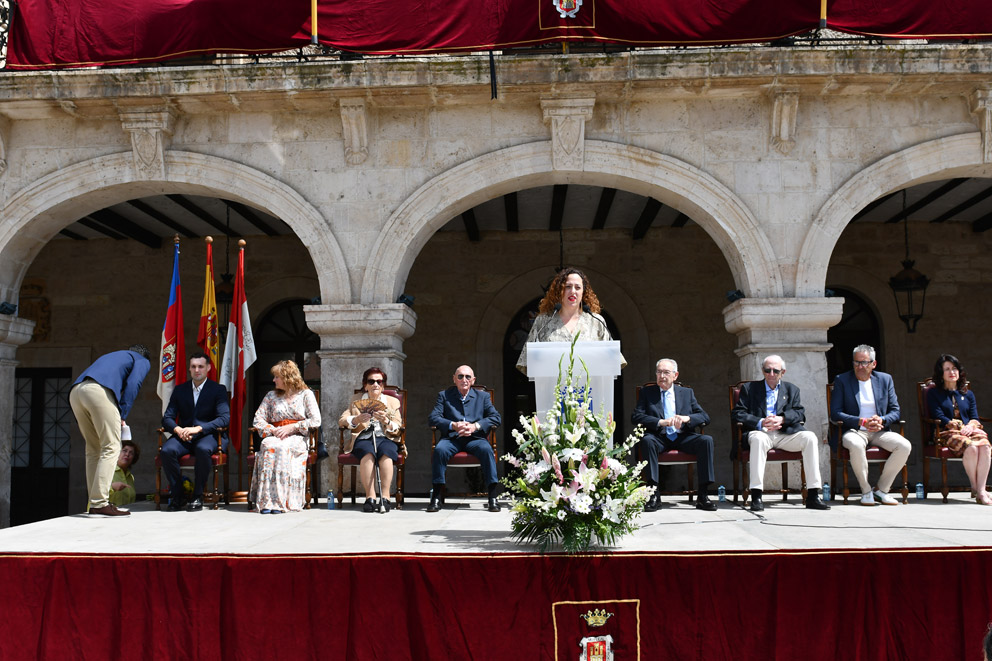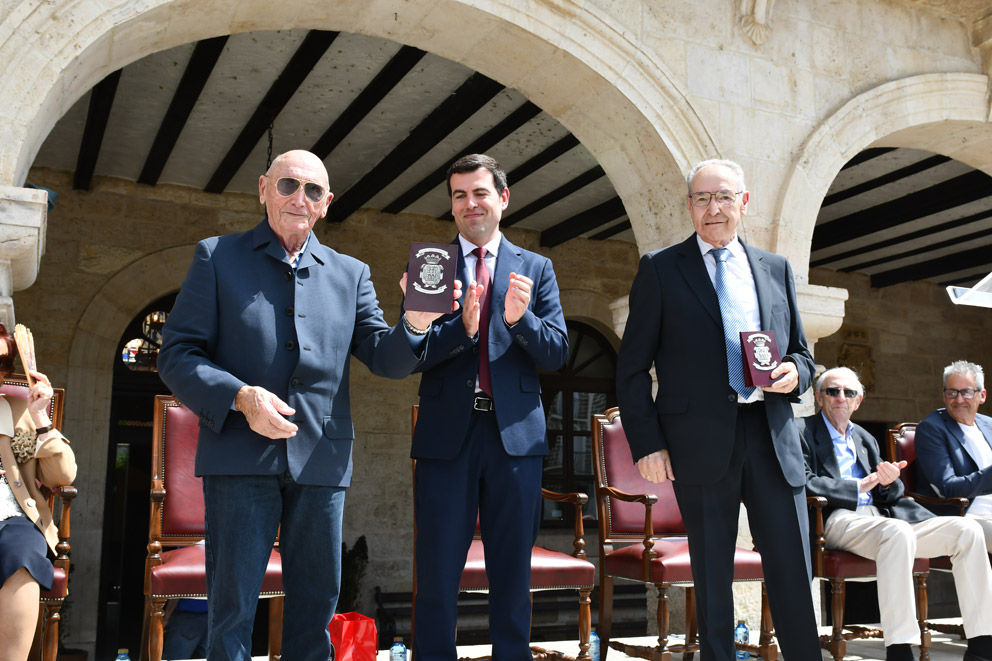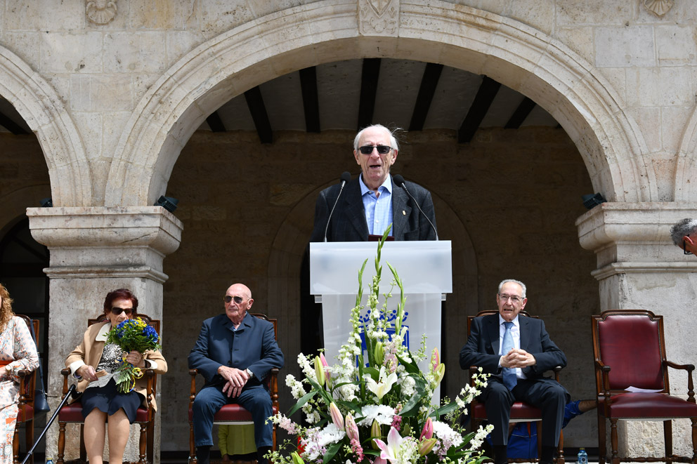 Por el templete ubicado en la plaza del Ayuntamiento pasaron, en este orden, la actual concejala de Cultura, Festejos y Turismo, Estefanía López, quien hizo un repaso a las actividades conmemorativas de los últimos días y agradeció la participación de tantos actores relevantes del municipio. A continuación, tuvo lugar el homenaje a las dos corporaciones municipales que en 1975 hicieron posible la fusión de los ayuntamientos, se nombró a todos sus miembros y recibieron el reconocimiento municipal los dos únicos concejales que se encuentran entre nosotros: Rodolfo Cuesta y Víctor Pérez. Ambos dejaron unas palabras de sus recuerdos de aquel junio de 1975 y de cómo era entonces el día a día en un ayuntamiento.