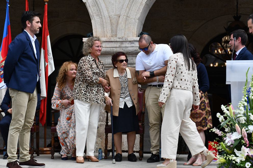 Posteriormente, se homenajeó a los dos alcaldes de los ayuntamientos fusionados: Agustín Varona (Merindad de Castilla la Vieja) y Severiano Villanueva (Villarcayo). Recogieron el reconocimiento sus familiares y fue la mujer de Varona, Dolores Álvarez, quien se dirigió de manera emotiva el público asistente.